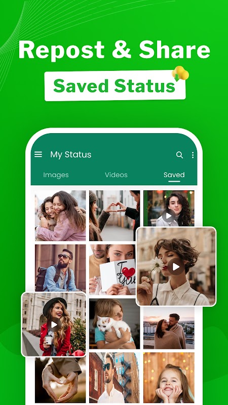 Легко сохраняйте статус видео и изображений и публикуйте их повторно. Загрузите все статусы видео для WAPP и поделитесь ими с друзьями. Воспроизводите видео с помощью лучшего видеоплеера в этом бесплатном статусном приложении.