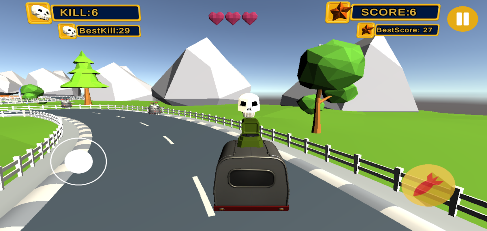 Arabanı seçerek sürmeye basla yolda düşmanlarla savaş ve hayatta kalarak en yüksek skoru sen yap!