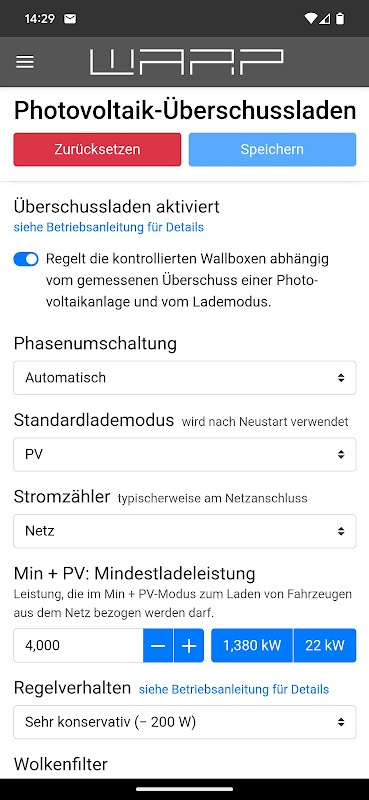 Это приложение обеспечивает удаленный доступ через my.warp-charger.com ко всем версиям зарядного устройства WARP и всем версиям WARP Energy Manager.