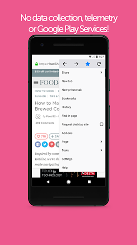 Waterfox is built with speed in mind, and many optimizations have been done to render Waterfox as fast as possible on your phone.