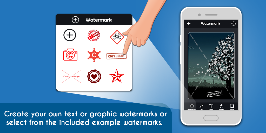 We thoughtfully designed each didgital watermark for you to suit all kinds of photos or categories. We have 100+ designs ready for you to use. Also you may choose to create your own unique style of watermark for your precious photos. To help you create your Watermark we have given your unlimited choice of Fonts Styles, Color options with shadows and level of opacity.