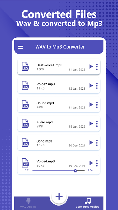Вы ищете приложение для воспроизведения файлов WAV на своем устройстве? Вы хотите преобразовать файлы WAV в другие форматы, такие как Mp3? если да, то загрузите приложение для конвертации WAV в Mp3 прямо сейчас и начните воспроизводить файлы WAV, конвертируя их в разные форматы.