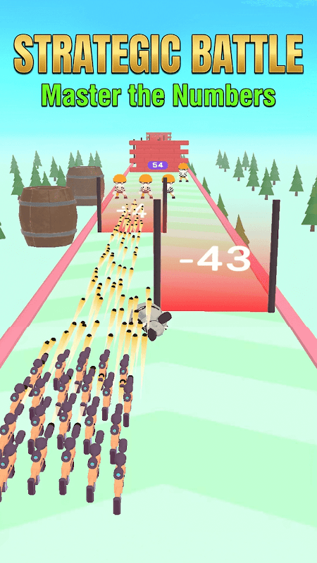 Выбирайте путь с большими числами, проходите через ускорительные ворота, избегайте препятствий и заполняйте трассу оружием.
