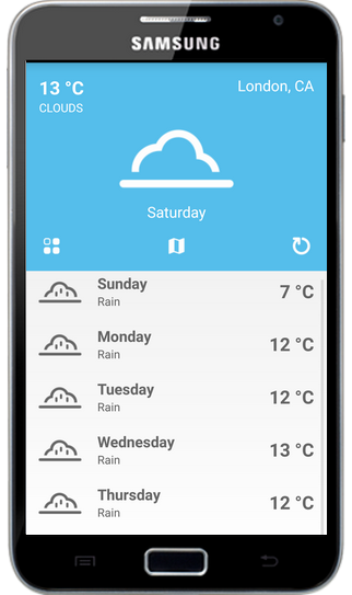 - Поддержка GPS местоположение и извлекает последние погодные условия для текущей области.
