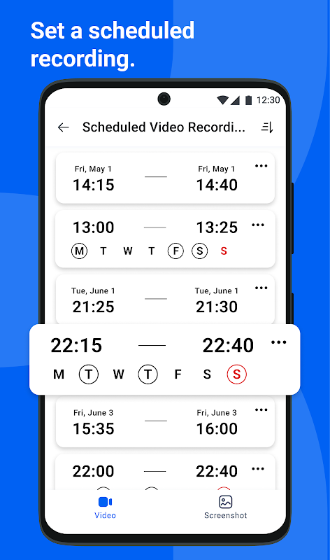 Планируйте и планируйте снимки экрана видеозаписей в определенные даты и время. Установите точные даты и время для автоматической записи, чтобы вы никогда не пропустили важные моменты, когда вы не можете активно смотреть трансляцию.