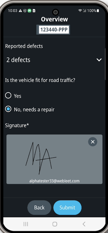 Мобильное приложение Webfleet Vehicle Check позволяет водителю сообщать о любых неисправностях автомобиля в цифровом формате, включая проблемы с шинами, сокращая время, затрачиваемое на техосмотр, и избавляя от необходимости тратить много времени на оформление документов. Менеджер автопарка получает уведомления в режиме реального времени, а задачи по техническому обслуживанию можно запускать одним кликом.