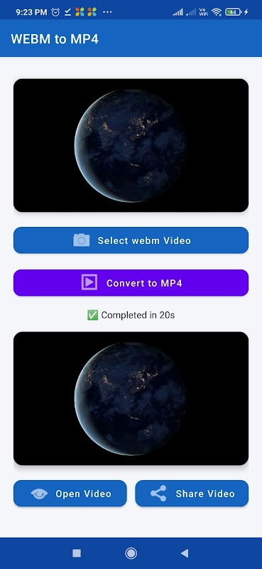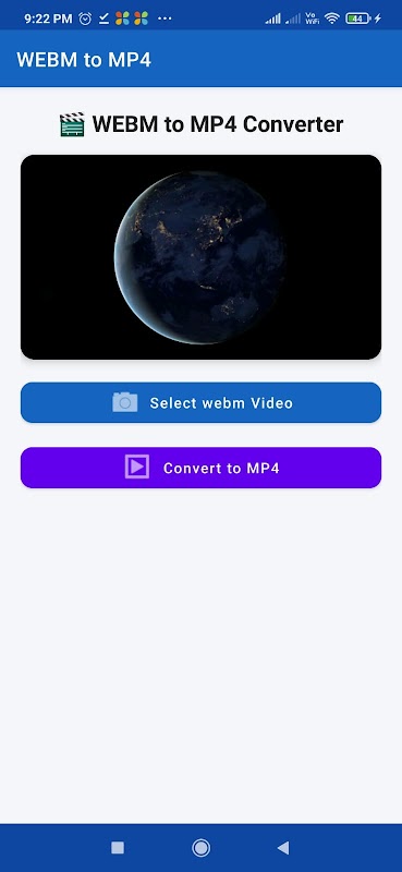 Конвертируйте ваши видео WEBM в MP4 мгновенно с помощью этого сверхбыстрого и легкого приложения для Android! Независимо от того, скачали ли вы видео WEBM из Интернета или получили их через WhatsApp, Telegram или браузеры, это приложение поможет вам конвертировать их в универсально поддерживаемый формат MP4 всего одним нажатием — все офлайн, без интернета или загрузки на какой-либо сервер.