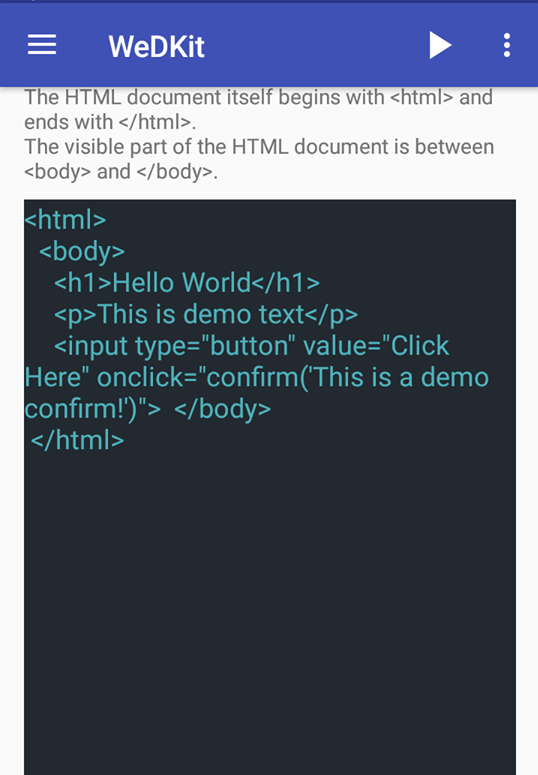Web Development Kit will help you to learn HTML and CSS by using your mobile phone. Here you will get code snippet with short description. The most interesting part is you can edit those code and run to view the output.