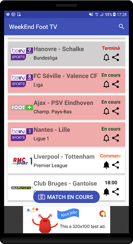 - Affichage de programme des matches de foot pour les prochaines jours.