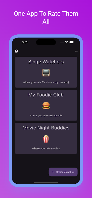 Создавайте свои собственные клубы: создавайте эксклюзивные рейтинговые группы по вашим любимым темам или хобби. Вы сами решаете, что будет обсуждаться!