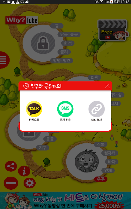 각각의 동영상마다 Why?책의 연계 페이지가 표시되어 있어 Why?책과 함께 보면 Why? 과학 시리즈를 제대로 활용할 수 있어요.