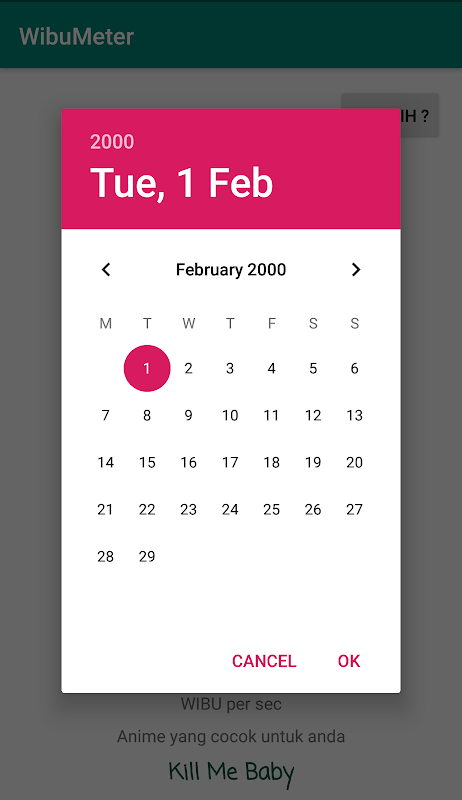 Aplikasi ini digunakan untuk mengukur tingkat ke-wibu-an seseorang.