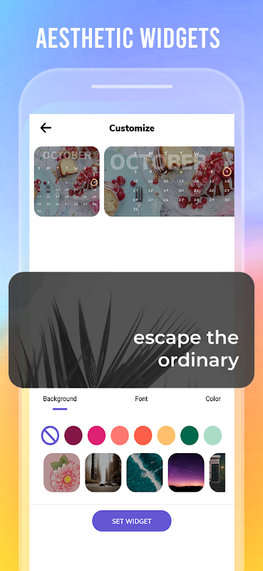 The Color Widgets Personalizer allows you to personalize your home screen with surprising new widgets. Download now and move your gadget fleeing!