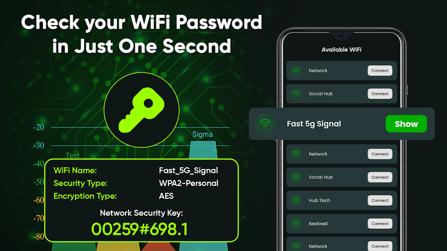 Карта отображения анализатора Wi-Fi — это полный набор инструментов Wi-Fi, который предлагает карту Wi-Fi, анализатор сети Wi-Fi, карту отображения Wi-Fi, тест скорости Wi-Fi и показывает уровень сигнала Wi-Fi. Wifi Master может измерять точный PING Wi-Fi, скорость загрузки и скачивания. Бесплатное приложение WiFi Password Show генерирует случайные и надежные комбинации паролей, чтобы обеспечить безопасность сети Wi-Fi.