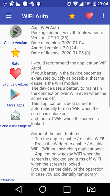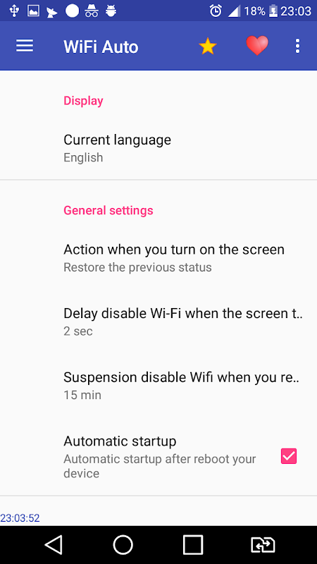 Приложение Wifi Auto - очень хороший инструмент для автоматического включения Wi-Fi при разблокированном экране и автоматического отключения Wi-Fi при заблокированном экране.