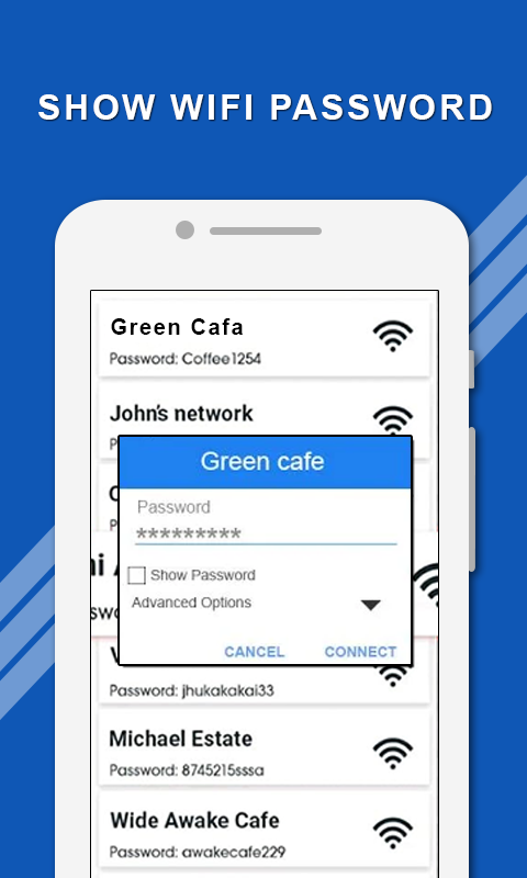 WIFI Password Show Master, Share wifi password - это полезное приложение для восстановления пароля wifi, используемого для отображения пароля wifi, обмена паролем wifi, чтобы не взломать WIFI. Чтобы использовать приложение, ваше устройство должно быть root.