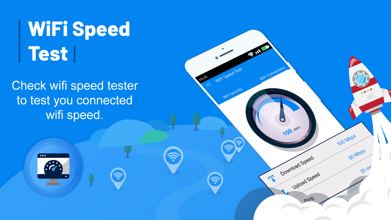 Одним касанием мастер-ключ Wi-Fi и автоматическое подключение проверит скорость интернета и быстро покажут точные результаты теста скорости широкополосного доступа, включая точки доступа Wi-Fi, сети LTE, 4G, 3G.