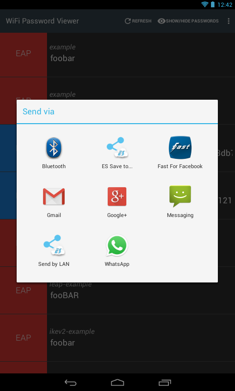 WiFi Password Viewer reads "wpa_supplicant.conf" file stored in your device, allowing you to copy or share WiFi passwords of all known networks.
