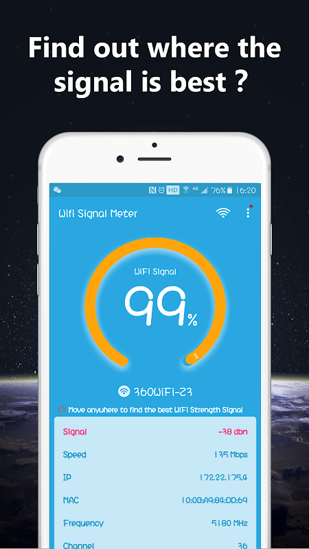 WiFi Signal Strength Meter может быстро проверить вашу силу Wi-Fi, чтобы найти лучшее место.