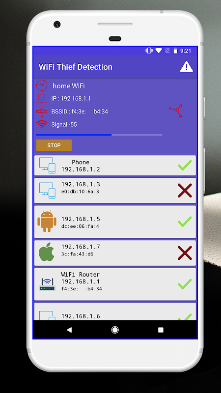 Вы получите полный контроль над тем, как проверить, кто использует мой Wi-Fi или кто на моем Wi-Fi. Это обнаружение WiFi Thief: WiFi Analyzer: приложение для сканера WiFi - это полное решение для всех. С помощью кнопки используйте wifi-анализатор, который также называется wifi-сканером в простых словах. Он будет отслеживать всех пользователей wifi с помощью монитора Wi-Fi. После отслеживания пользователей вы также можете выполнить поиск по ip-адресу. Мы также предоставляем поиск по MAC-адресам для всех пользователей сети Wi-Fi. безопасность Wi-Fi - это потребность каждого. Использование этого App wifi-анализатора, который будет использовать wifi-сканер, очень точно для вашей информации. Многие люди задаются вопросом, как узнать, использует ли кто-то ваш Wi-Fi, и если вы хотите узнать, как узнать, кто использует мой Wi-Fi, просто используйте это приложение, и он сделает всю работу за вас.