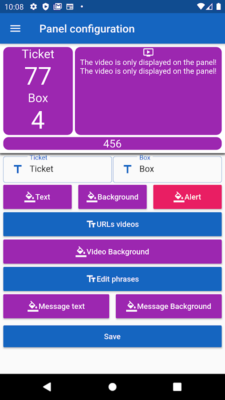 Приложение является частью группы приложений, которая управляет очередями малого и среднего бизнеса. С помощью этого приложения вы установите номер заявки, который будет отображаться в окне, и сконфигурируете все поля панели, определяющие список воспроизведения видео, отображаемые фразы и цветовые настройки (Panel Next).