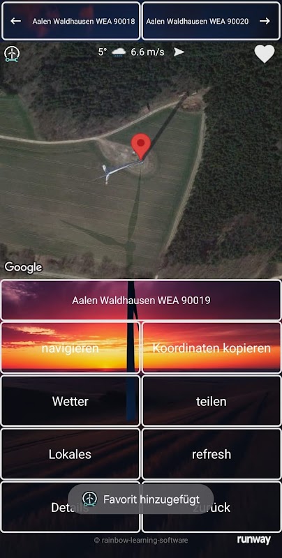 Быстро найдите практически любую турбину по названию или ключевому слову и получите полный предварительный просмотр на карте. Отображаются такие сведения, как производитель, тип, дата ввода в эксплуатацию, местоположение, высота ступицы, диаметр ротора, номинальная мощность и актуальные погодные данные – всё без регистрации и полностью анонимно.