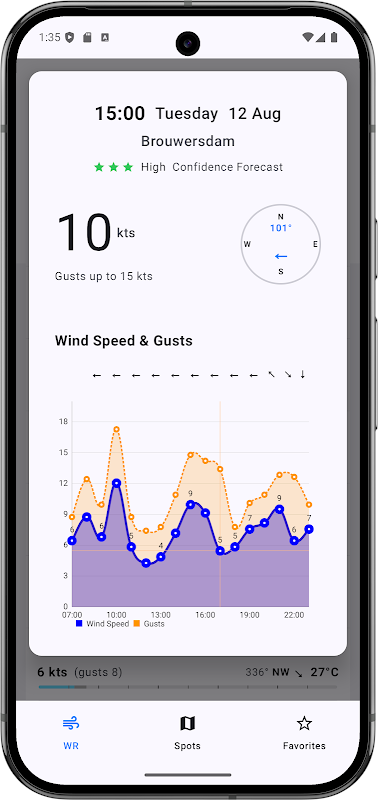 Получайте точные прогнозы ветра в режиме реального времени и открывайте лучшие места рядом с вами.
