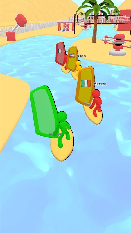 Вы мчитесь по реке на виндсерфинге. Вы можете хитрить и устранять своих противников. Вы должны победить любой ценой!