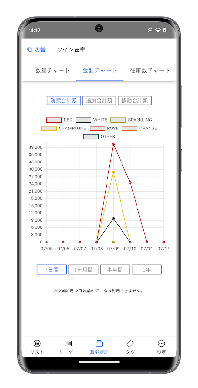У нас есть более 100 видов вина на складе, и каждый раз, когда мы увеличиваем или уменьшаем количество, мы ищем соответствующее вино с помощью программного обеспечения для работы с электронными таблицами. Давайте закончим такую неэффективную работу. Если вы используете винный код, вы можете отобразить соответствующее вино, просто прочитав штрих-код со своего смартфона. Вы можете проверить список всех изменений в виде истории.