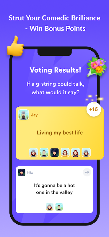 Начните свою комедийную битву, создав профиль игрока, который кричит «ты». Поделитесь кодом игры или ссылкой, чтобы пригласить друзей. Чем смешнее вы будете отвечать на пикантные вопросы в каждом раунде, тем больше очков вы наберете.