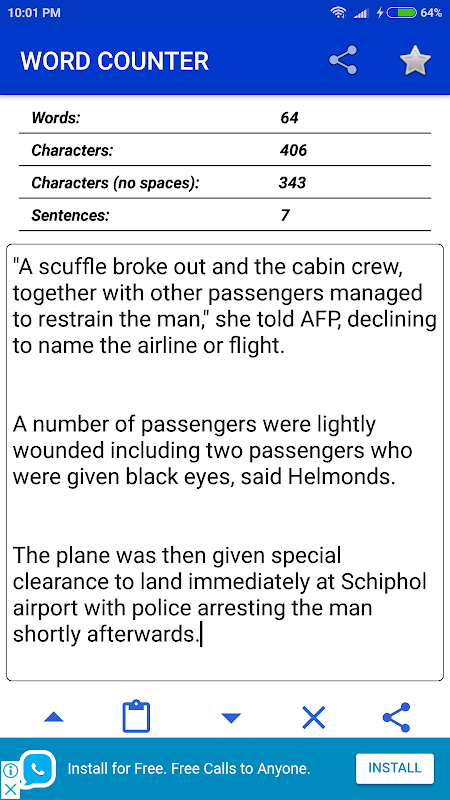 Word Counter - это бесплатный и простой в использовании текстовый инструмент для подсчета слов, предложений и символов в вашем тексте. Вы также можете скопировать текст в приложение, написать его в текстовой области, изменить текст в нижнем регистре на верхний регистр, текст в верхнем регистре на строчный, а также легко очистить текст.