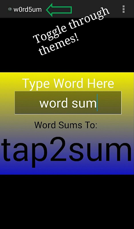 Tap on the "w0rd5um" title to toggle through different color schemes of the app!