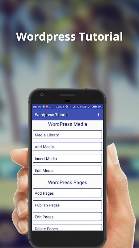 Wordpress Tutorial app collections of Categories are below and provide all this Topic Like,