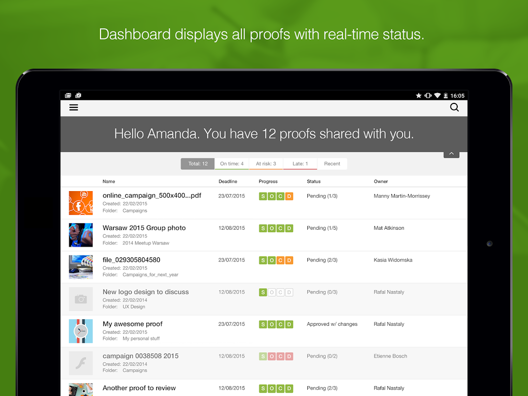 Просматривайте и одобряйте цифровой контент прямо с вашего мобильного устройства с помощью мобильного приложения Workfront Proof. Тысячи компаний полагаются на Workfront Proof для создания потрясающего контента и оптимизации процессов цифровой проверки и утверждения каждый день.