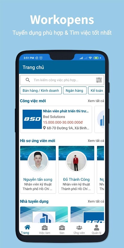 Workopens - ведущая платформа для карьерных возможностей во Вьетнаме. С помощью приложения Workopens вы сразу получите профессиональное, уникальное резюме. В то же время, уважаемые работодатели будут активно приглашать вас подавать заявки на самые горячие работы, экономя время и безопаснее при поиске работы. Ваша задача - создать профессиональное резюме на Workopens прямо сейчас.