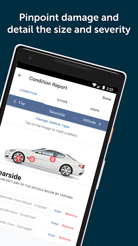 Отчеты о состоянии позволяют вам перемещаться по транспортному средству и выявлять любые дефекты, которые может иметь транспортное средство, отмечая размер, серьезность, стоимость и т. Д. Вы также можете добавлять изображения и видео. Это отличный инструмент для использования, так как он предоставляет свидетельство о состоянии автомобиля до того, как его отправят в мастерскую.