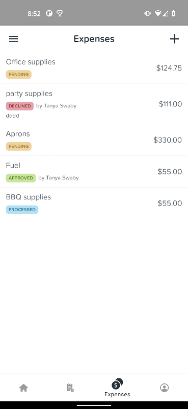 - Управление расходами: просматривайте историю претензий по расходам, отправляйте расходы своему руководителю на утверждение, снимайте квитанции для прикрепления к претензиям.