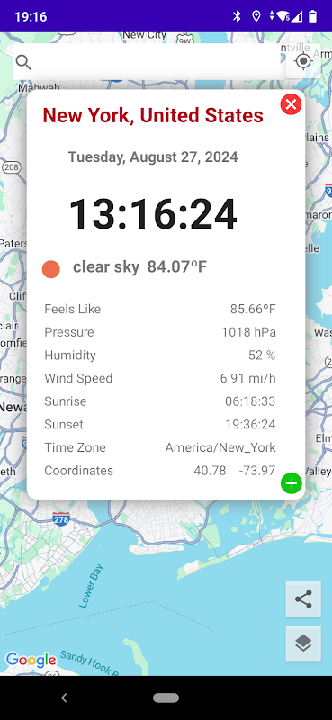 Вы также можете развернуть окно, чтобы увидеть подробные данные о погоде в этом месте в данный момент, а также данные о его часовом поясе и его координатах.