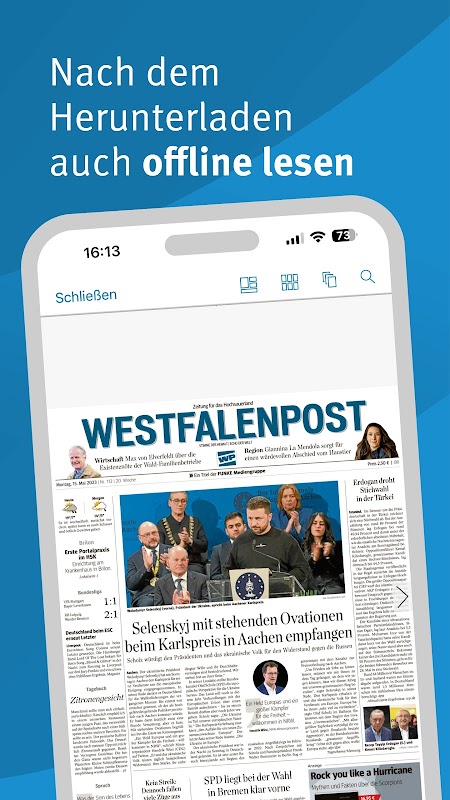 В своем приложении для электронной бумаги вы можете читать все местные издания вашего WP, в том числе из других регионов, таких как Хаген, Зиген или Бальве.