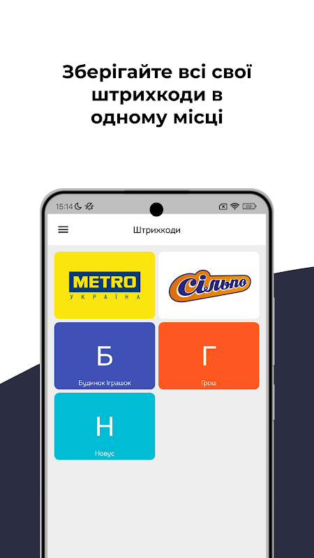 - Сохранение штрихкодов — сканирование и сохранение штрихкодов с названиями и типами.