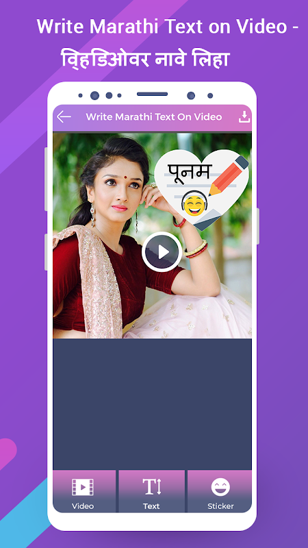 Simplest way to edit any videos to write your personal name or quotes with this Write Marathi Text on Video - Video Par Naam Likhe application.