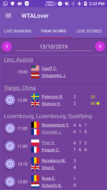 Приложение WTALover посвящено поклонникам тенниса WTA (Женской теннисной ассоциации). Как страстный энтузиаст тенниса, я придумал приложение, которое легко сочетает в себе расписание матчей, информацию о турнирах с жеребьёвками, статистику, рейтинги в реальном времени (включая лучшие сценарии для игроков), подробности матчей в реальном времени и профили игроков — и все это доступно одним щелчком мыши.