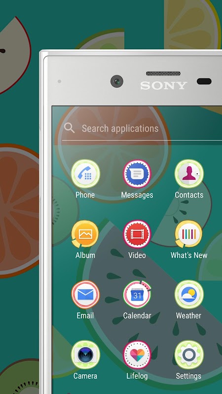 Измените дизайн устройства с помощью темы Fruit Salad для Xperia™.