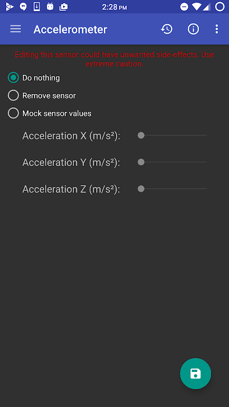 1: Можно отключать и изменять большинство датчиков на телефоне (без перезапуска).