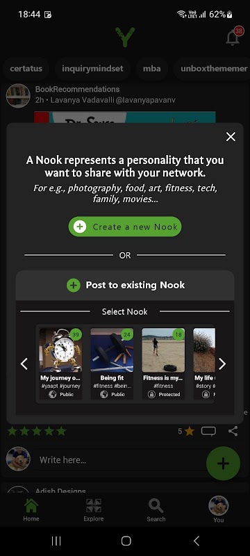 Получите Yaapt и начните новый социальный опыт с Nooks. Вы можете создать уголок для каждого из ваших персонажей (развлечений, искусства, семьи, путешествий, музыки, мнений, хобби...).