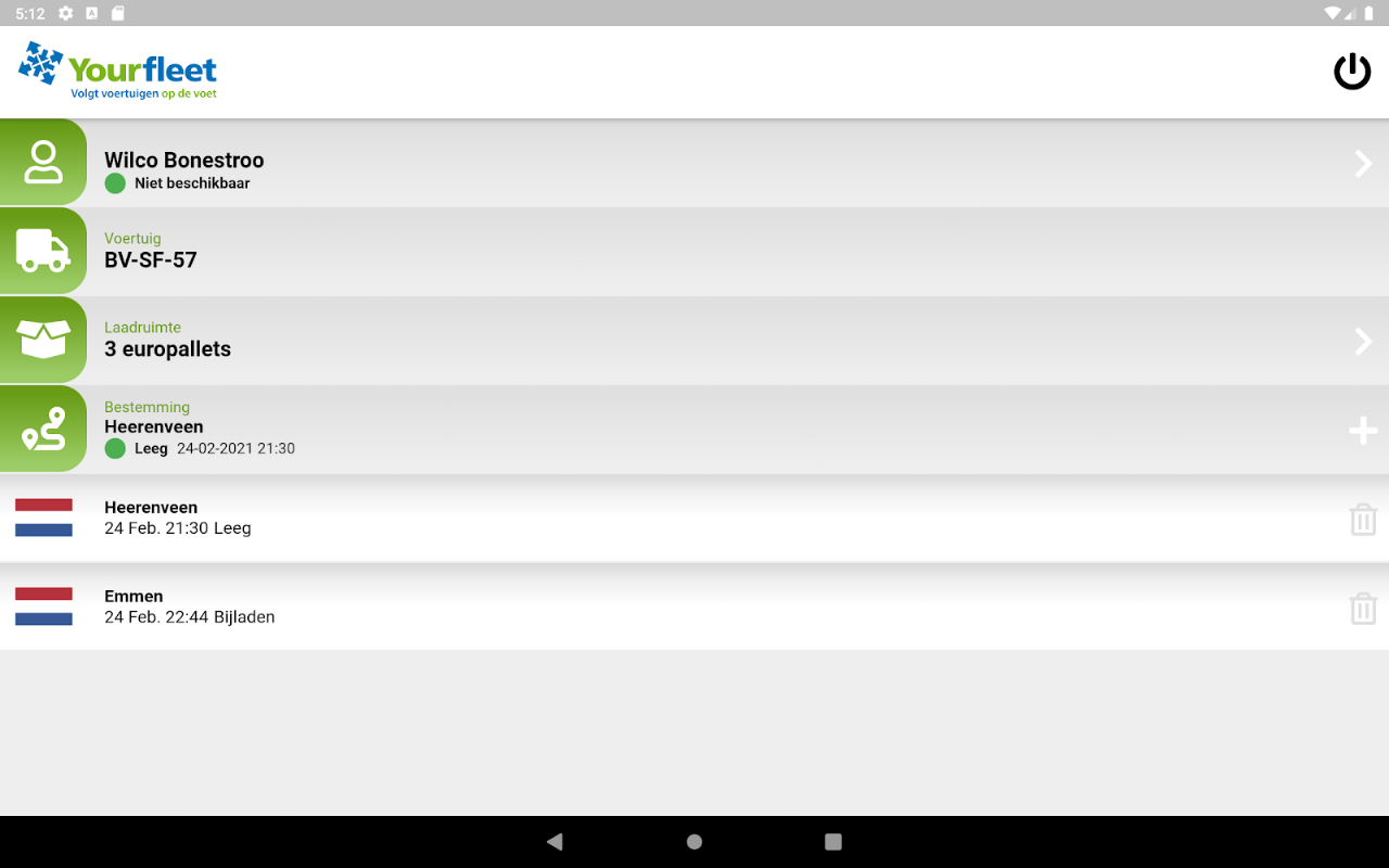 kan de chauffeur middels een gekozen status bijvoorbeeld