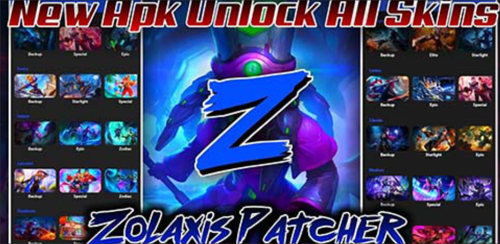 Zolaxis Mobile Patcher Injector Unlock Skins Guide App is an app made to let your read all the legend heroes skins and abilities including spells skills passive attacks and special powers and each heroes skins visual appearance of the abilities including all the kinds of heroes.
