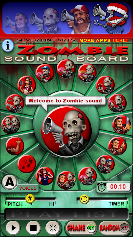Высокое качество Zombie Soundboard. включает в себя музыку и множество связанных с зомби звуков