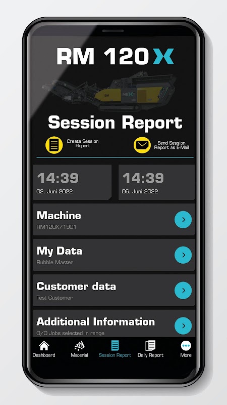 As a 24/7 digital assistant for mobile crushing and screening plants, RM XSMART can be called up anytime and anywhere using a smartphone. The data is available in real time and the various states of the machine, from fuel level to engine speed and optionally throughput, are displayed.