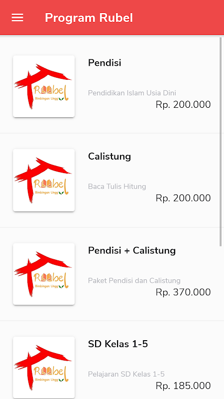 Aplikasi Rubel (Rumah Belajar) Teluk Lerong Samarinda yang memuat informasi mengenai tempat bimbel (bimbingan belajar) Rubel.